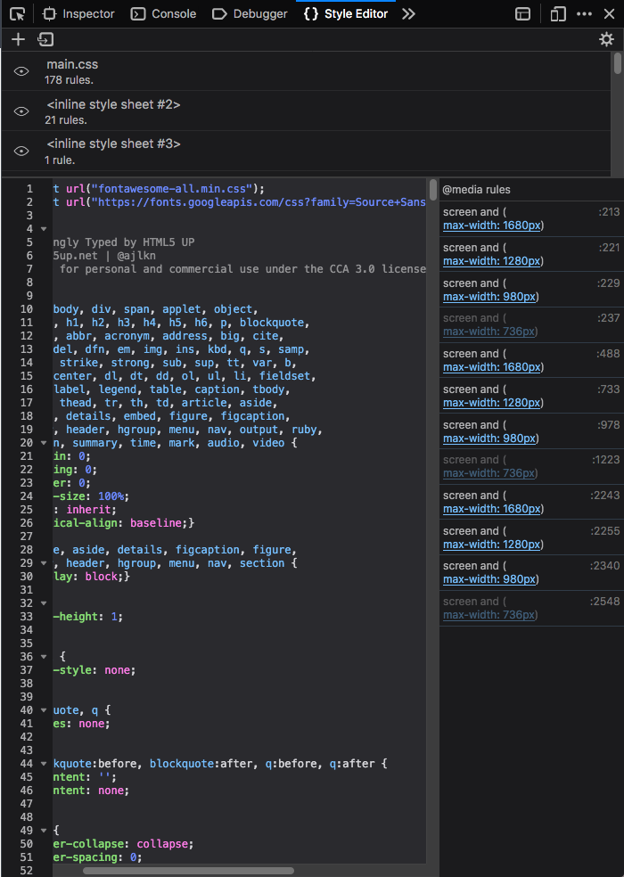Allows you to view and edit associated stylesheets as well as create new stylesheets from scratch.