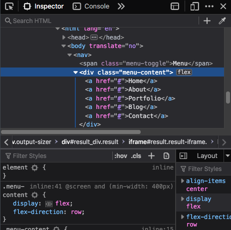 The Flexbox Inspector allows you to examine CSS Flexbox Layouts using the Firefox DevTools, discover flex containers on a page, examine and modify them, debug layout issues, and more.